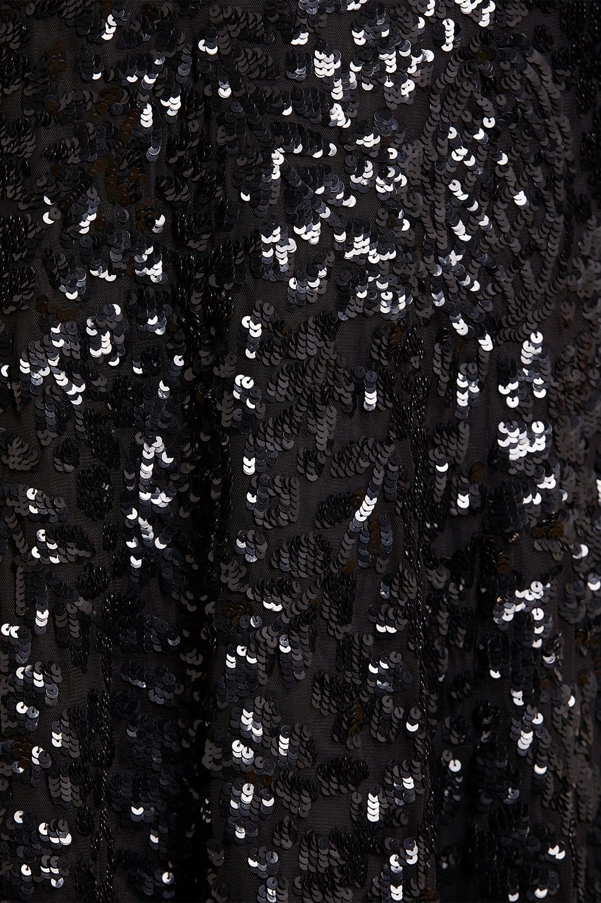 Tulle decorated with tonal, iridescent sequins.