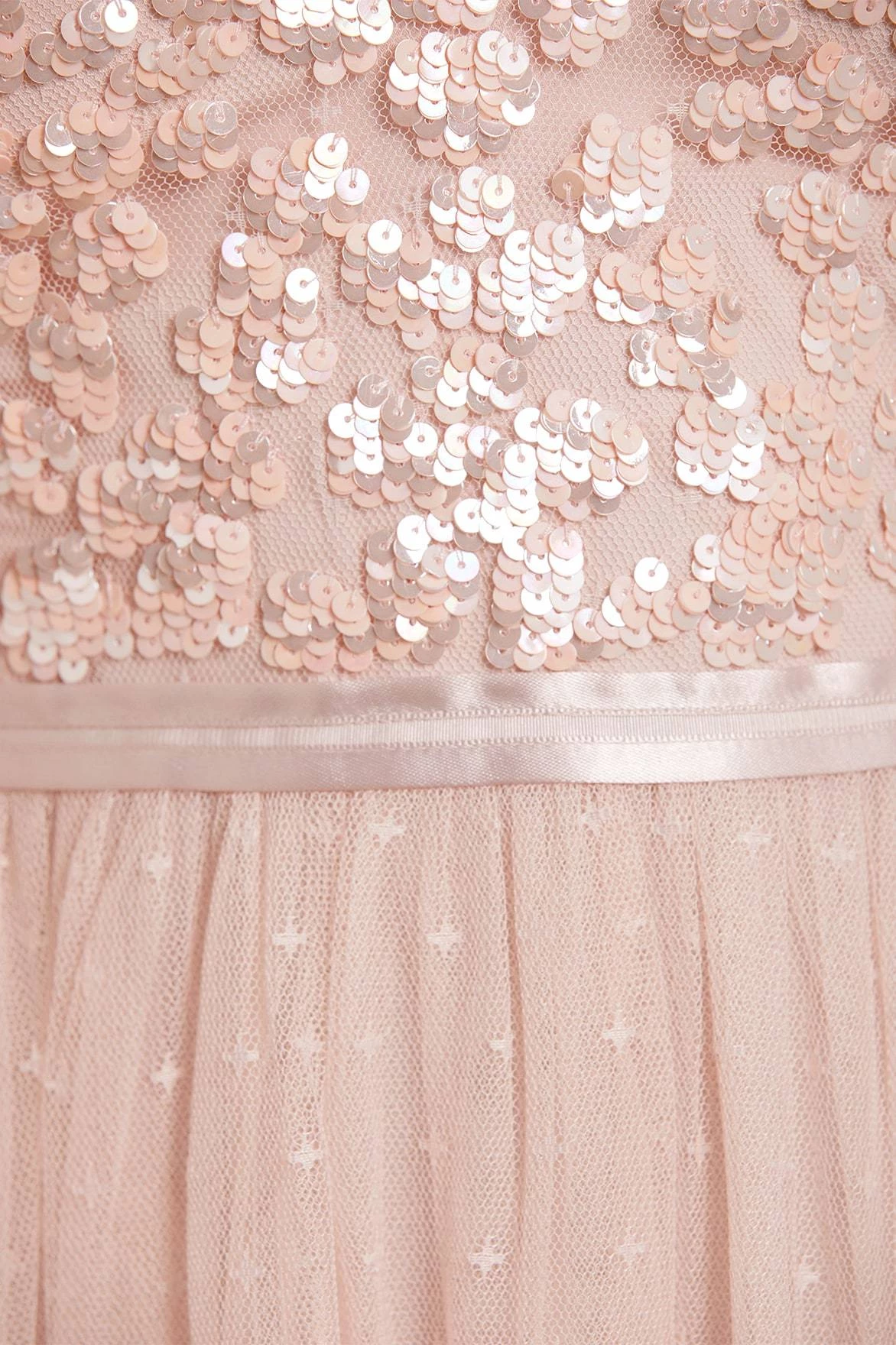 – Tulle decorated with tonal iridescent sequins