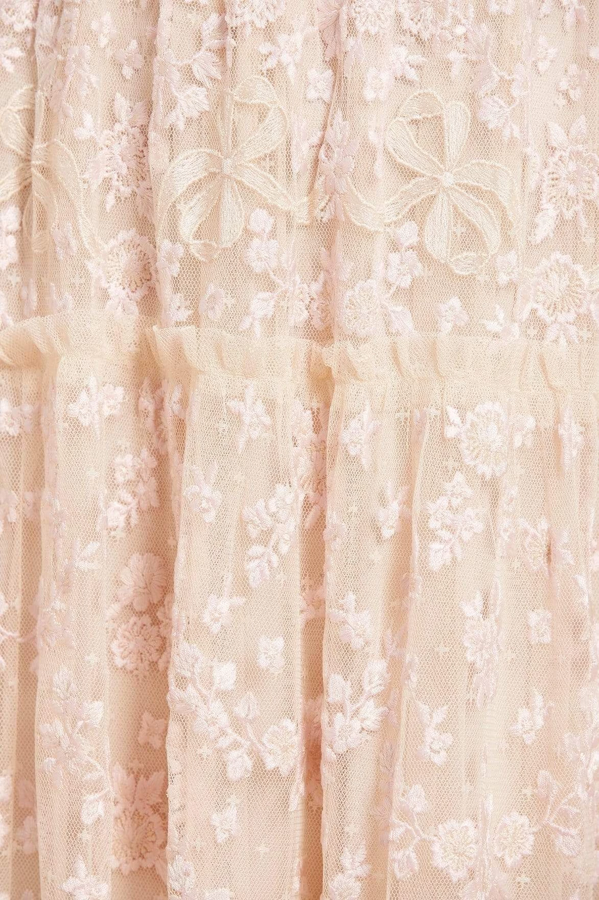 – Kisses tulle decorated with tonal floral embroidery